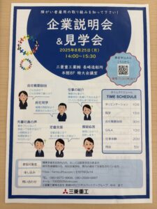 利用者さん1名、支援員3名で三菱重工業の企業説明会&見学会に行きました✨ 内容は会社概要説明、業務チームのお仕事体験、会社の施設内見学、定着支援取り組みや先輩社員さんのお話がありました🎶 お仕事体験では、業務チームの庶務 […]